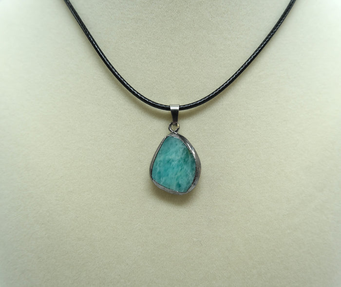 Discover elegance with our Black Gold Leafed Amazonite Pendant Necklace, a true treasure for any jewelry collection.