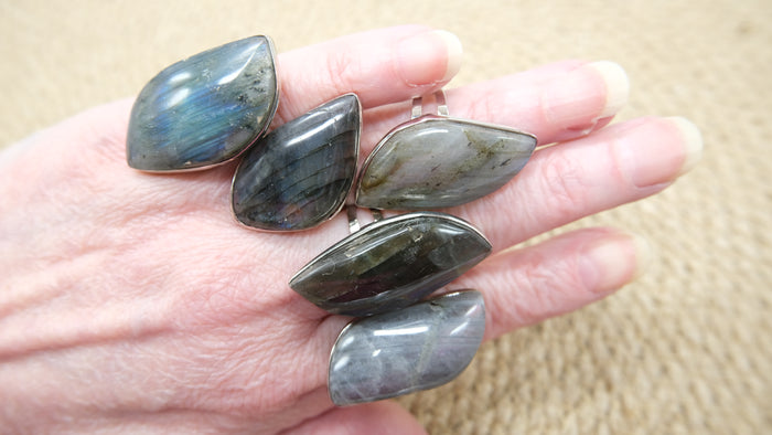 Discover the enchanting beauty of our labradorite rings. Each piece features a unique, iridescent gemstone that captures the light with every movement, showcasing a mesmerizing play of colors from deep blues to vibrant greens, or purple hues.