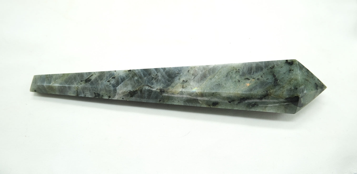 Harness the mystical energy of transformation with our Labradorite Tapered Point Wand. Known as the Stone of Magic, Labradorite awakens intuition, strengthens spiritual connection, and shields your aura from negativity. Its tapered point design focuses energy with precision, making it an essential tool for healers, meditators, and crystal enthusiasts.