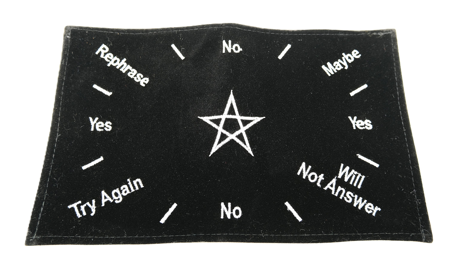 • Design: Centered around the protective Pentacle symbol, representing the five elements—Earth, Air, Fire, Water, and Spirit—this mat anchors your readings in balance and sacred geometry.
