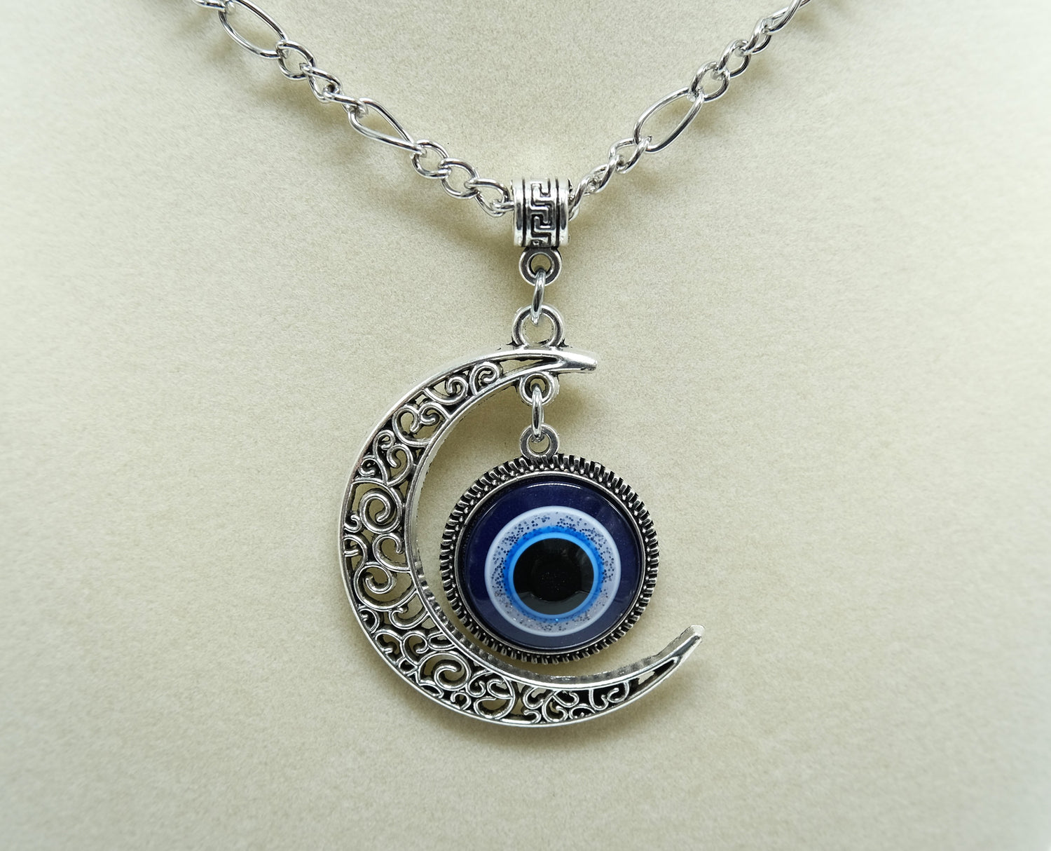🔹 Design: Featuring a beautifully detailed Evil Eye charm and a crescent moon, this necklace pairs effortlessly with everyday wear or ritual attire. The 20" chain offers a flattering mid-length fit—ideal for layering or wearing solo.